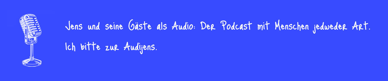 Nur Klang, nur Stimme - das Visuelle kreiert jeder Hörer selbst.Viel Freude bei Jens' Audio, ich bitte zur Audijens.